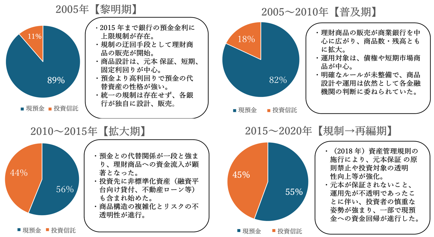 図9 理財商品の発展時系列と現預金・投資信託の構成比
