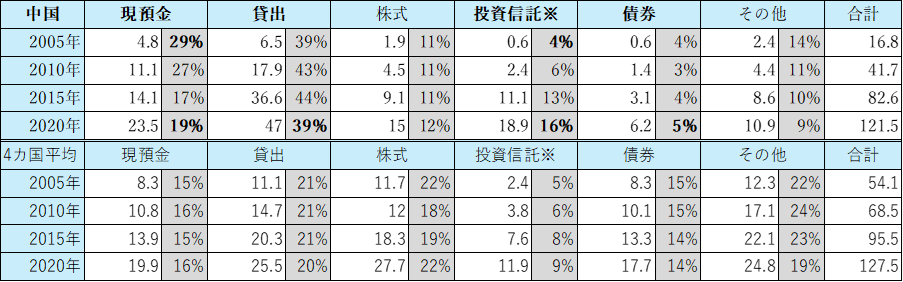 ※投資信託は、理財商品を含む(理財商品とは中国特有の運用資産)