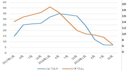 左軸 コバルト ドル/ポンド(約0.45kg)