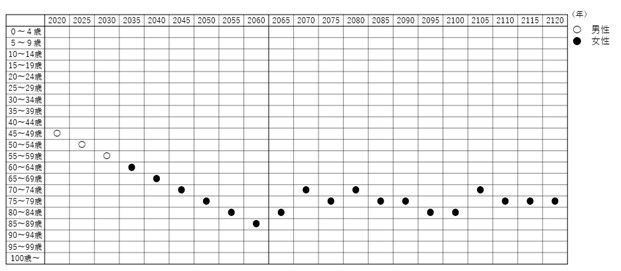 その際の年齢は、前掲参考2のとおり、70歳代前半、同後半、80歳代前半のいずれかになる。社会の重心が一段と高齢者サイドに偏るということだ。